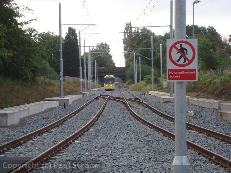 A view of the new tram stop at St Werburgh's Road. To the right of the camera is the former Fallowfield Loop line.