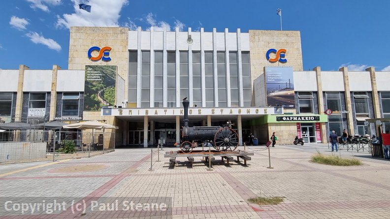 Siemens "Hellas Sprinter" class 120 electric locomotive 120-015 running round its train at Thessaloníki.