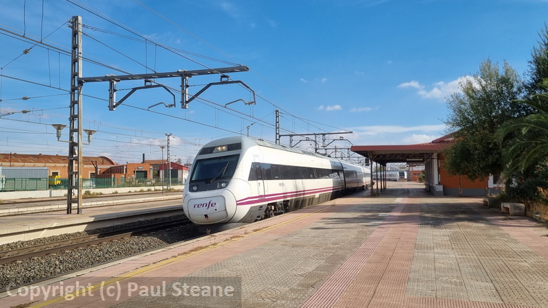 An Alfa Pendular EMU passing through Pampilhosa at speed on a Porto to Lisboa working.